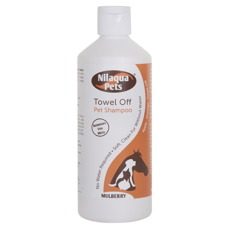 Nilaqua® PET šamponi so popolna revolucija v higieni hišnih ljubljenčkov! Umivanje z Nilaqua šamponi poteka popolnoma brez stresa za vas in za vašega psa. Tekočino preprosto nanesite na dlako, da se razpeni in obrišete z brisačo. To je vse, nič več nereda, umazanije, slabe volje in mokrih sten… Tehnologija Towel off omogoča izjemno globinsko čiščenje. Ne pušča lepljivih ostankov v dlaki. Redno umivanje ne povzroča zamašitev žlez lojnic, kot je to pogosto pri običajnih brezvodnih šamponih. Izdelek je zelo dobrodošel tudi pri umivanju mladičev, pri poškodbah, po operacijah, pri inkontinenci.