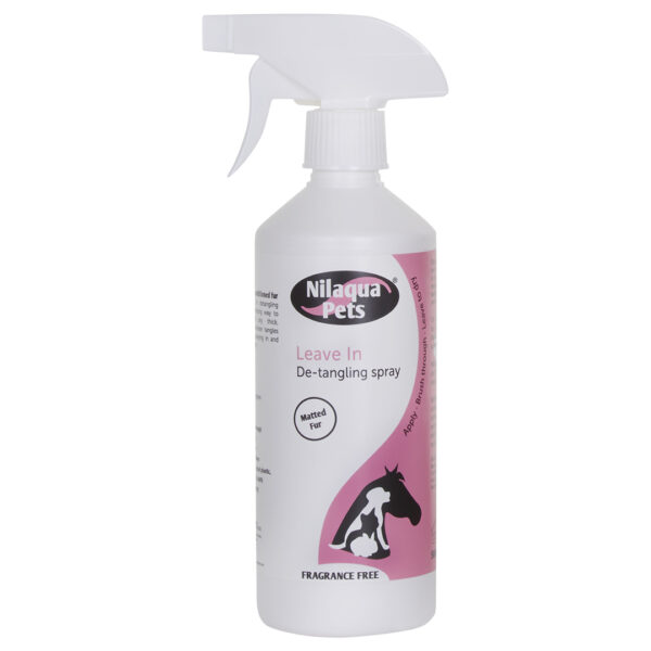 Nilaqua® pusti v spreju za razpletanje je neverjeten način za ravnanje goste, matirane dlake. Z razprševanjem in razčesavanjem odpravite zapletanje in vozle.